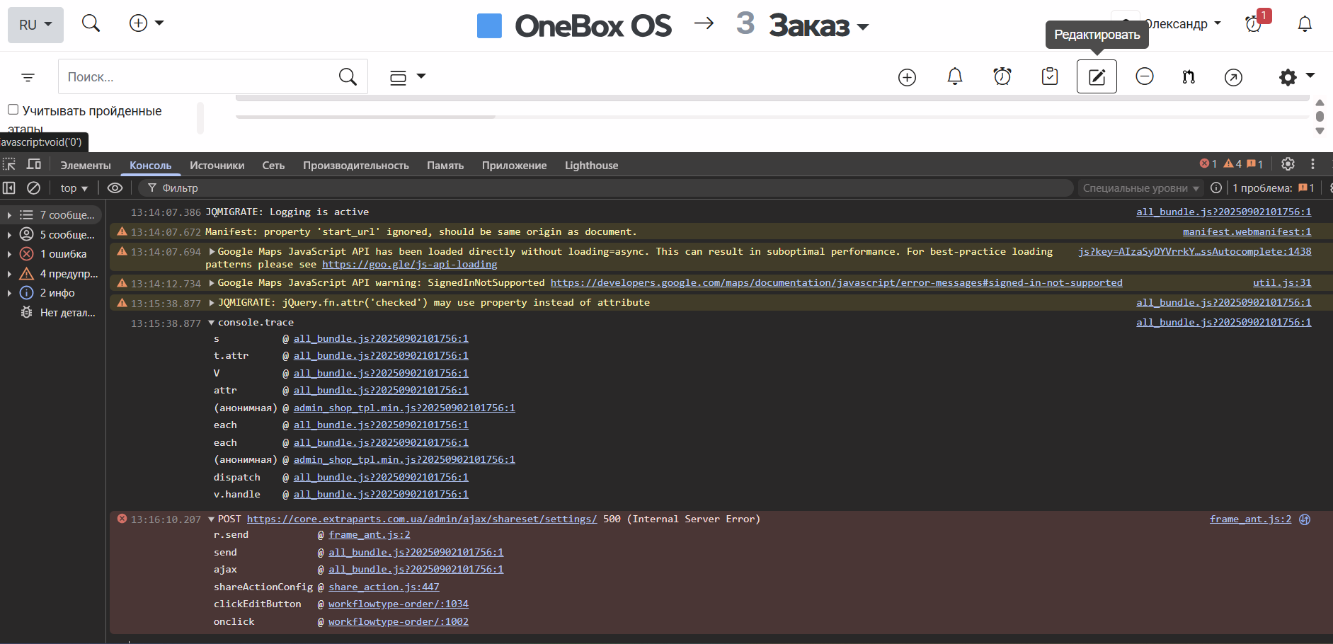 В app/workflowtype-order ставлю галочки на процессах вызываю Панель Массового Редактирования Процессов – модальное окно редактирования не появляется.