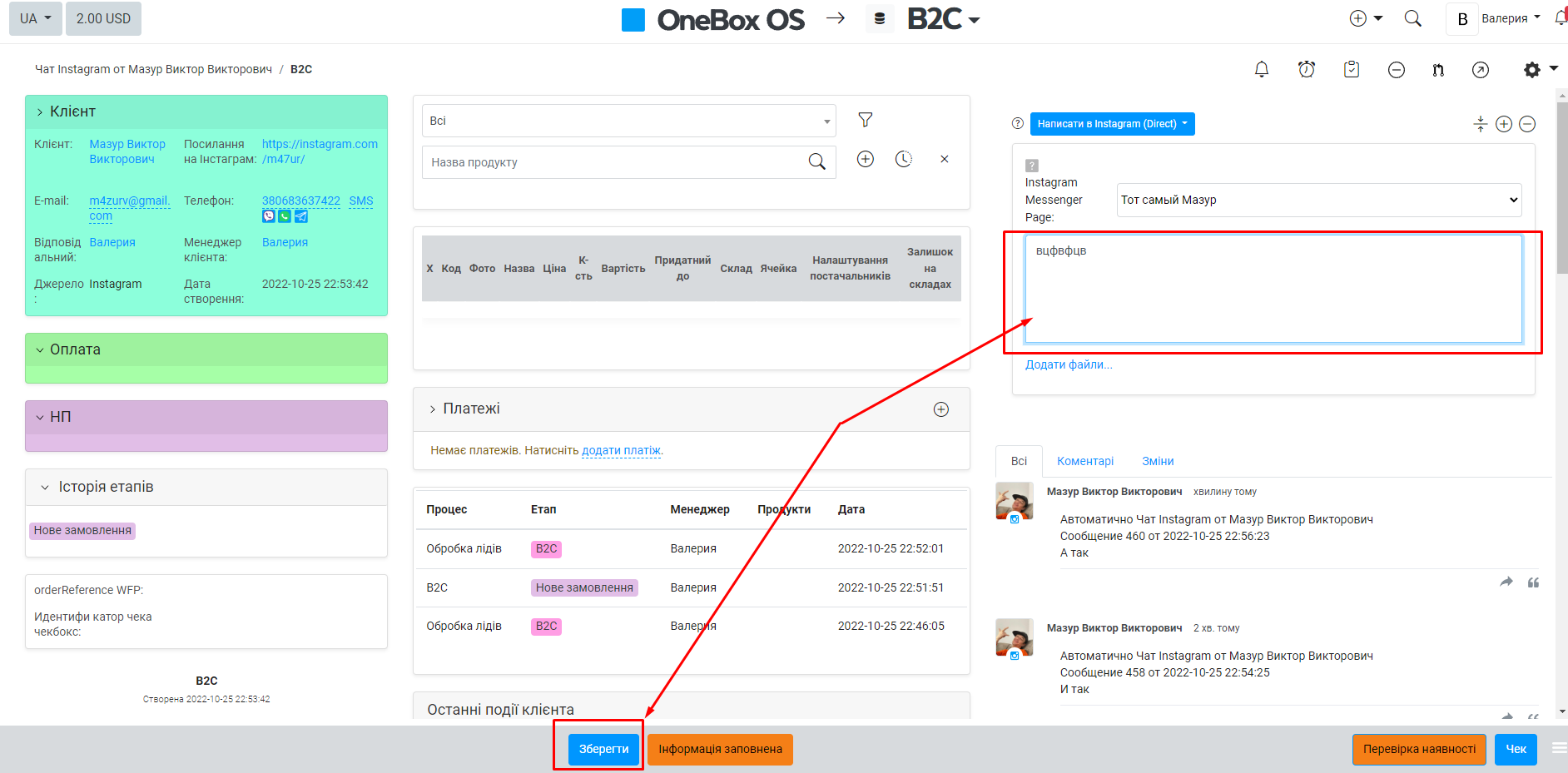 менеджер провел по воронке, перешел на этап "B2C" https://senseeducation.1b.app/admin/shop/workflowstatus/14/action/new/ , действием создался подпроцесс "B2C", родительский "обработка лидов" закрыта . После этих действий, если написать от имени клиента, то сообщения корректно затягиваются в нужный процесс , все ок. https://1b.app/ua/ajax/download/18058/